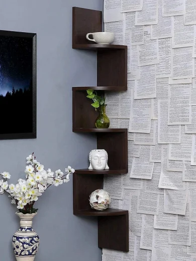 Zigzag Wall Shelf Wooden Wall Corner Shelves MDF ( Medium Density Fiber ) Wooden Wall Shelf ( Number of Shelves-5 Brown )
