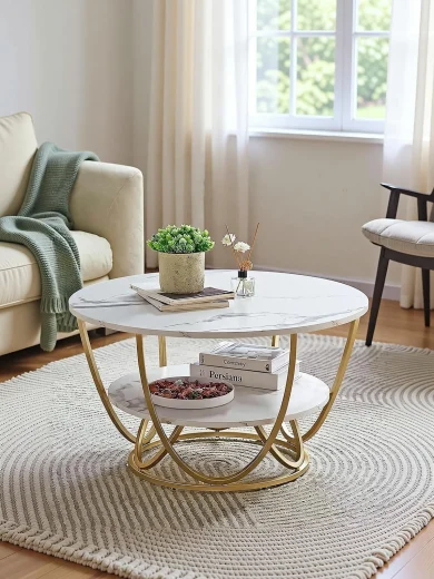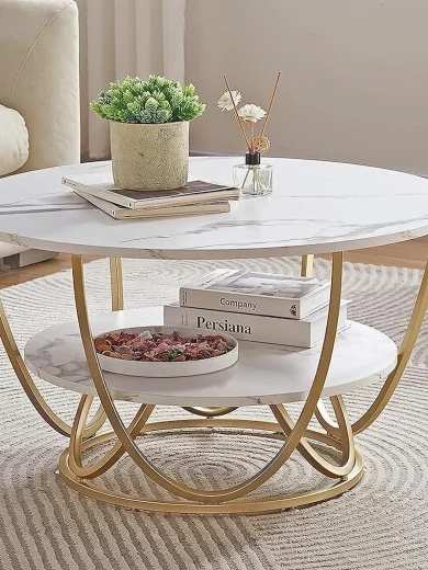 Metal Centre Tables For The Living Room, Side Tables And Coffee Tables Engineered Wood Coffee Table (Finish Color - Gold,White, Pre-assembled)